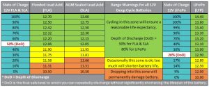 This isn’t a big range and explains why it’s so easy to over-discharge FLA batteries.